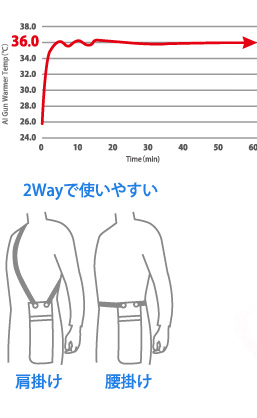 受胎率向上を目的に開発されたAG注入器ウォーマーネオは、温度制御機能により約36℃を長時間キープします。簡単操作で、マイナス20℃の環境下でも約36℃状態をキープ。薄型で軽量のフィルムヒーターを装着し、充電バッテリーは繰り返し使用できます。肩掛け・腰掛けの2WAYで使いやすく、汚れに強い生地と専用カバー付で汚れを気にせず安心して作業ができます。